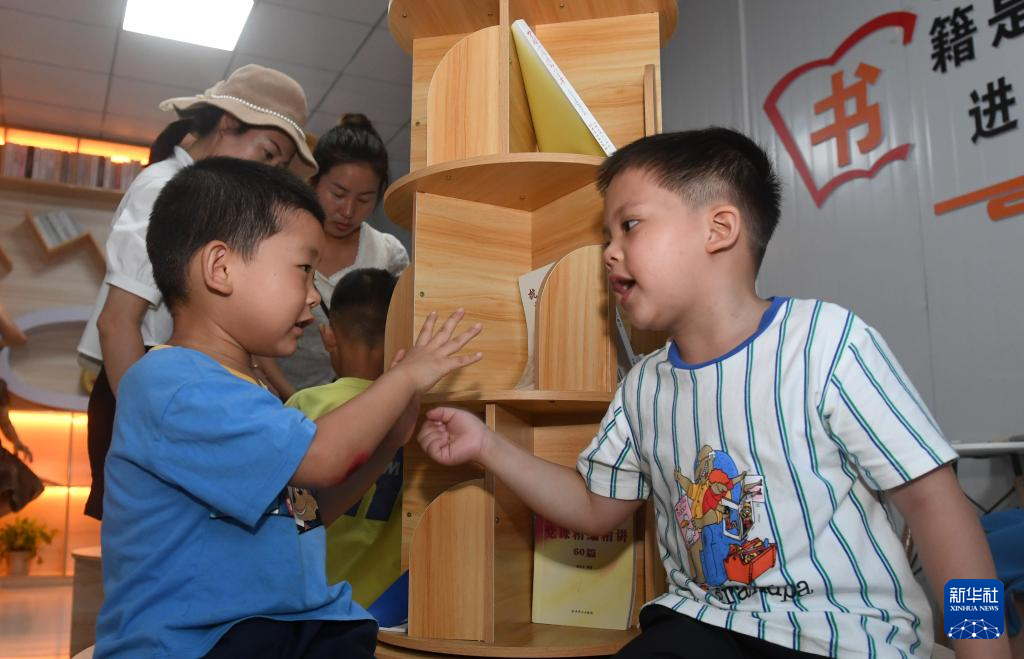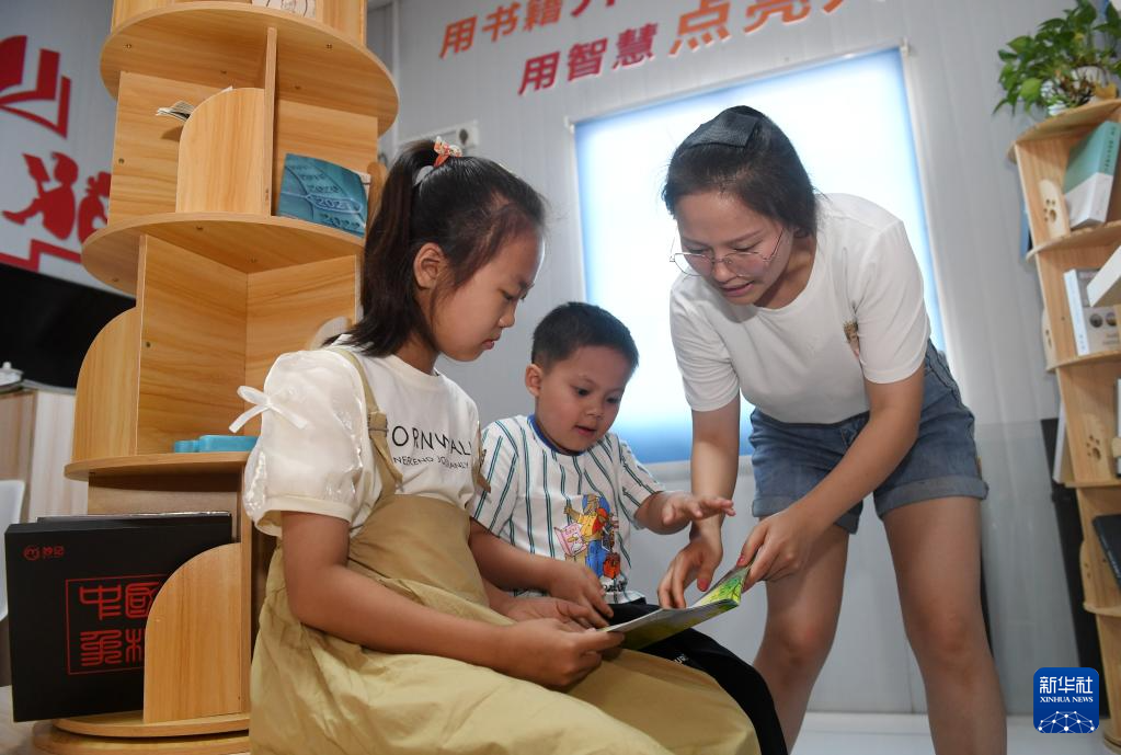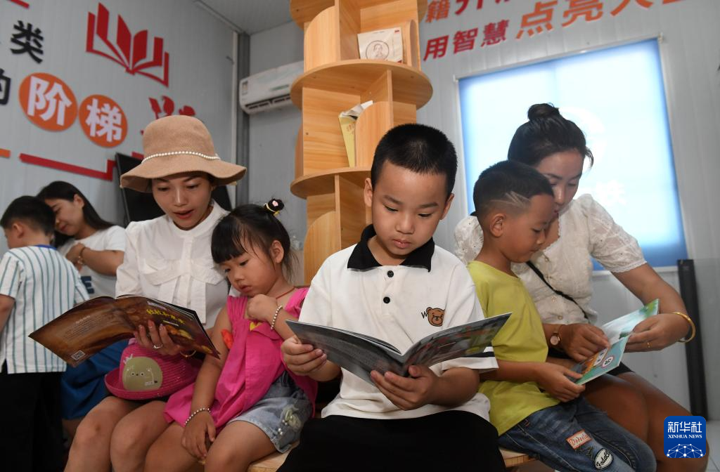 7月26日,在广西上横高速公路建设项目部,小朋友们在家长的陪伴下阅读书籍。