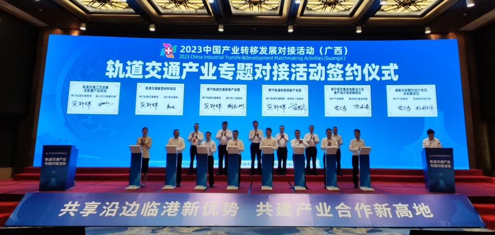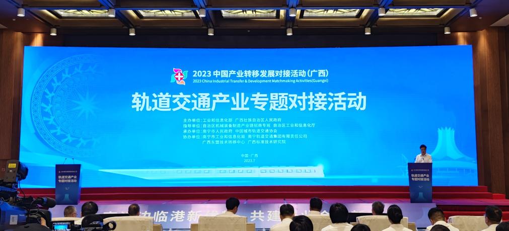 新华网南宁7月30日电(记者杨驰)7月30日,由工业和信息化部、广西壮族自治区人民政府主办的2023中国产业转移发展对接活动(广西)轨道交通产业专题对接活动在南宁市举行。本次活动以“共享沿边临港新优势,共建产业合作新高地”为宗旨,相关行业协会人士、客商代表、专家学者等500多人参加本次活动。