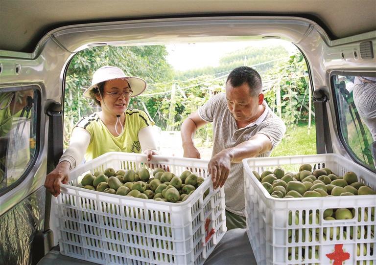 刘立德说,由于护理到位,今年的猕猴桃个头更大,平均亩产超过2000斤,总产量2万多斤。(冯艳芳 韦晓平)
