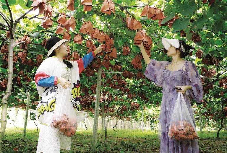 8月8日,伏虎华侨农场三队的红心猕猴桃开园上市。猕猴桃园对外开放后,吸引不少游客慕名而来,进园体验采摘的乐趣。