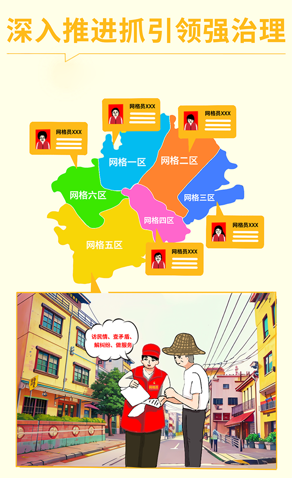 推行“党建+网格+大数据”模式,选优配强专职化管理的网格员,完善网格化管理、精细化服务、信息化支撑的乡村治理平台。