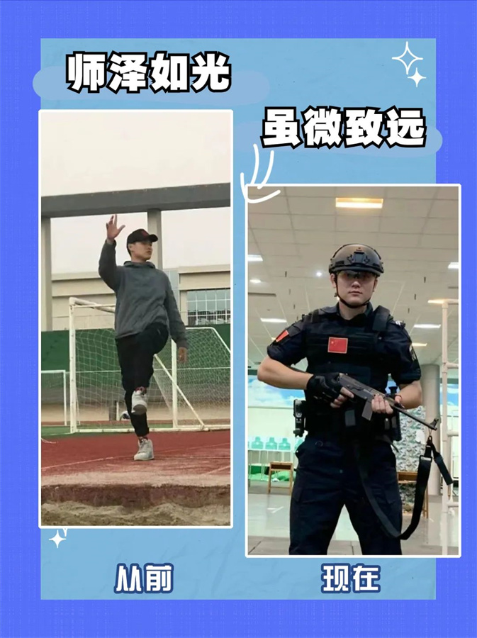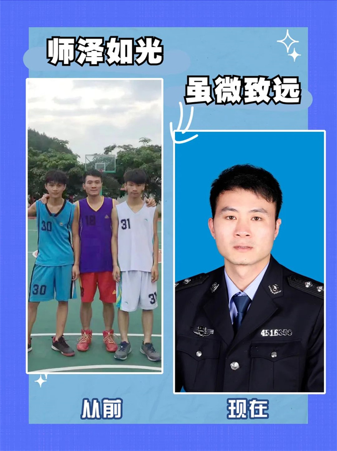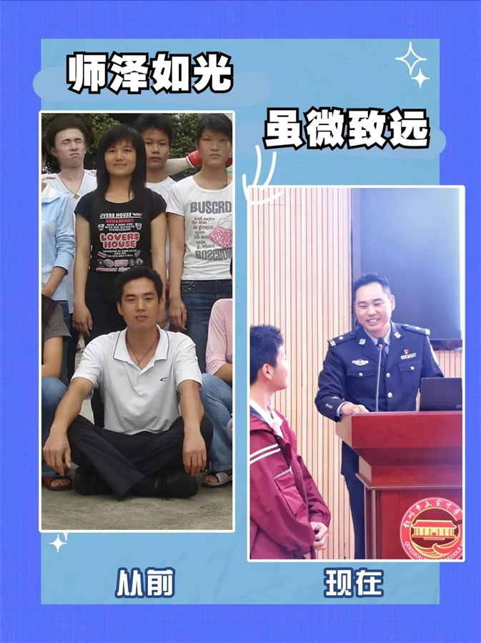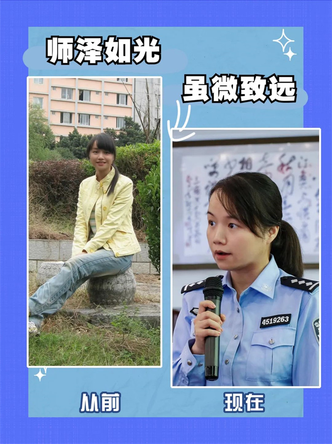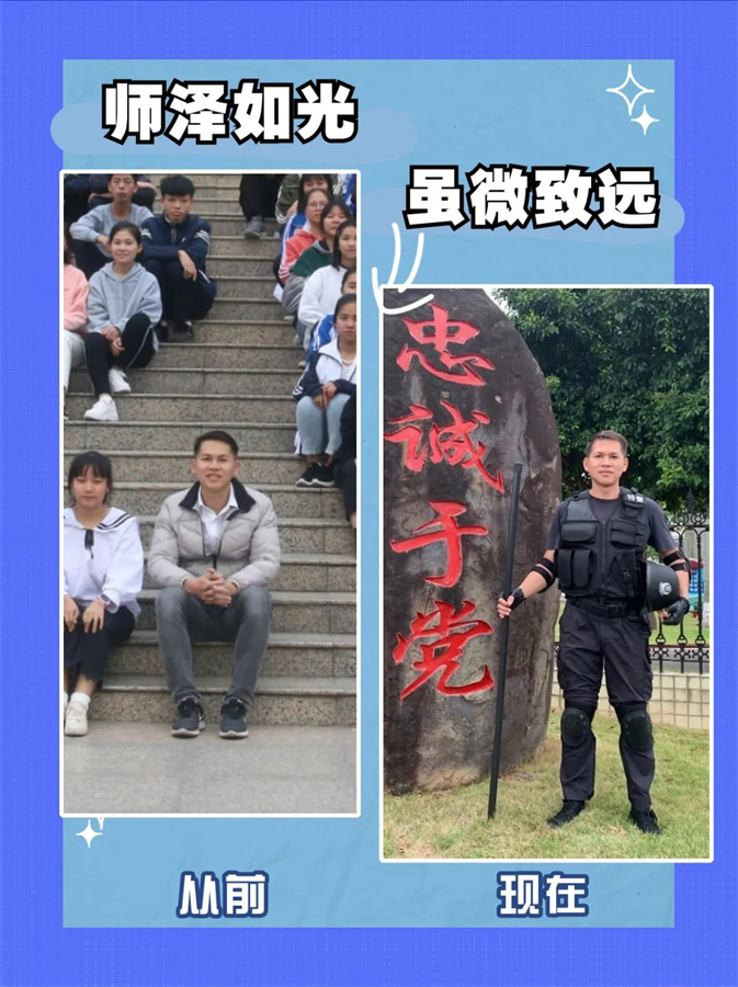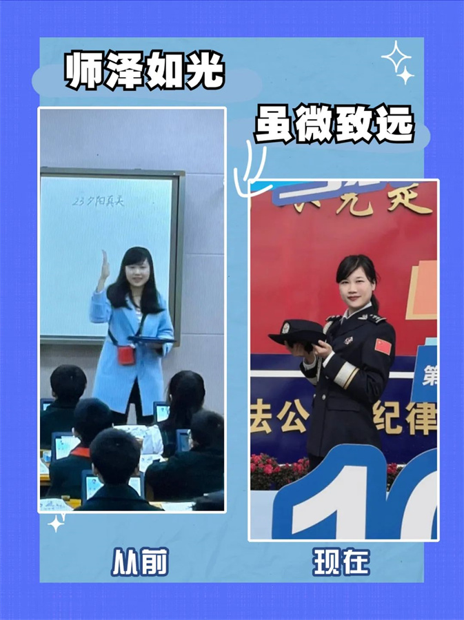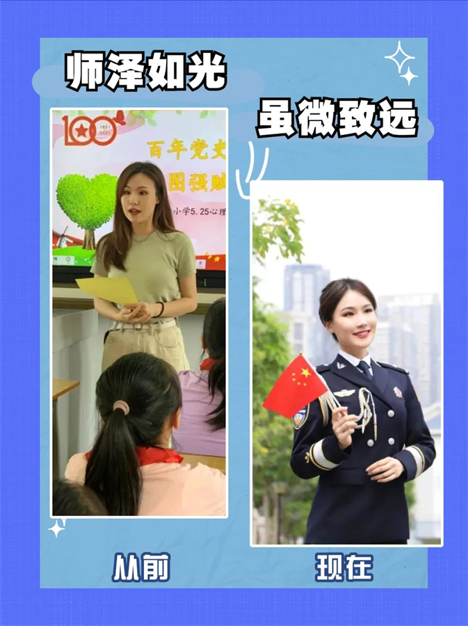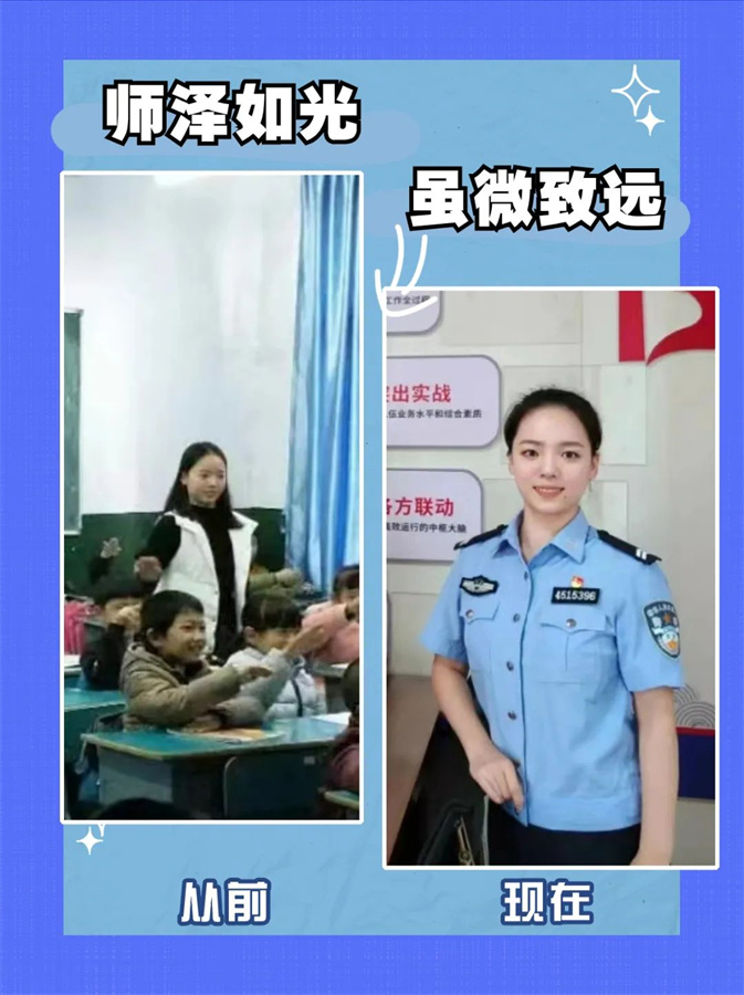 教师守护着祖国的未来,警察守护着百姓的安宁。从教师到警察,身份转变,初心不变。