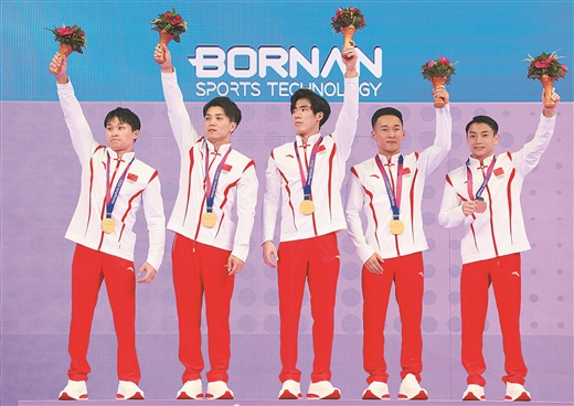 9月24日晚,由张博恒、邹敬园、肖若腾、林超攀、兰星宇组成的中国体操男队以262.025分的总成绩夺得杭州亚运会体操男子团体金牌,蝉联该项目冠军,广西籍运动员兰星宇因此拿到自己的第一块亚运金牌,也为广西健儿在杭州亚运会上获得首枚金牌。