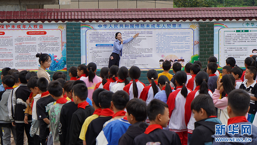 警察和少先队员唱起了普法山歌。牙举成 摄