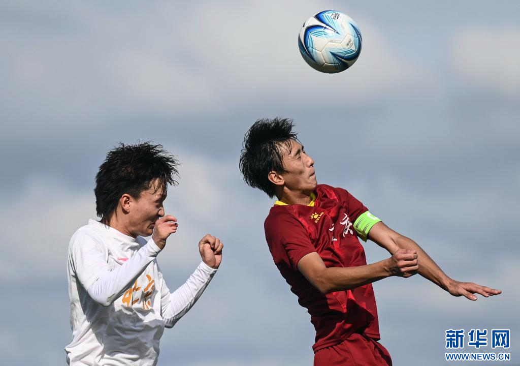 11月8日,北京队球员陈绍洋在比赛中头球解围。