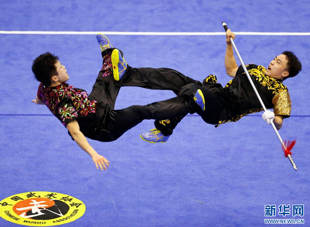 11月9日,天津队选手南永泉(上)与王联凯在比赛中。他们以9.700分的成绩与陕西队并列亚军。