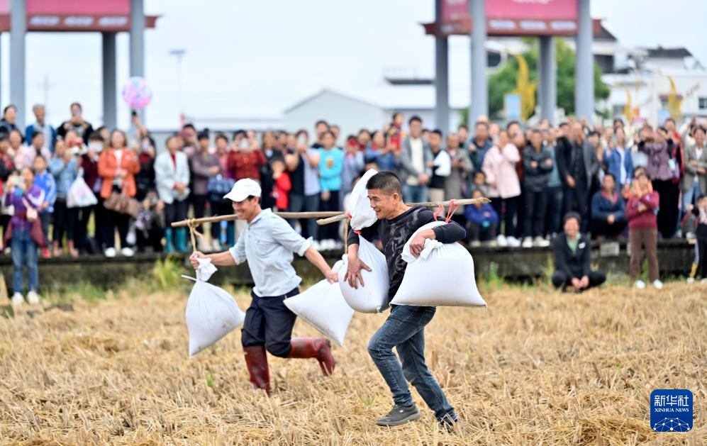 当日,广西柳州市柳城县古砦仫佬族乡举行首届生态文化旅游节。该乡14个村庄组成14支队伍,开展稻谷收割、挑粮接力、抓鸡等趣味运动竞赛,庆祝晚稻丰收。