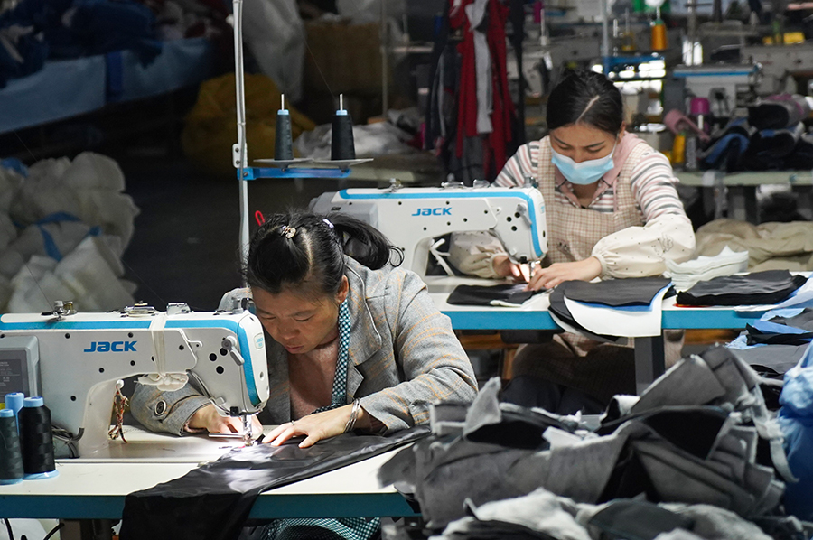 搬迁群众在就业帮扶车间务工。牙举成 摄