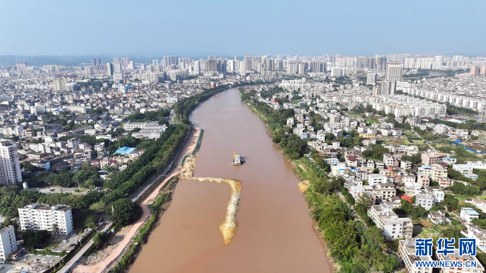 施工船在平陆运河途径钦州市区的航道建设现场作业(11月25日摄,无人机照片)。