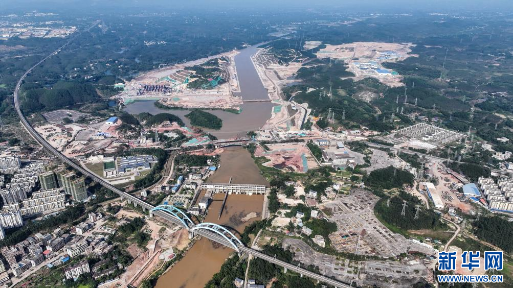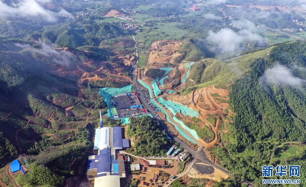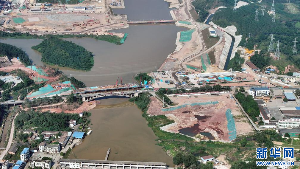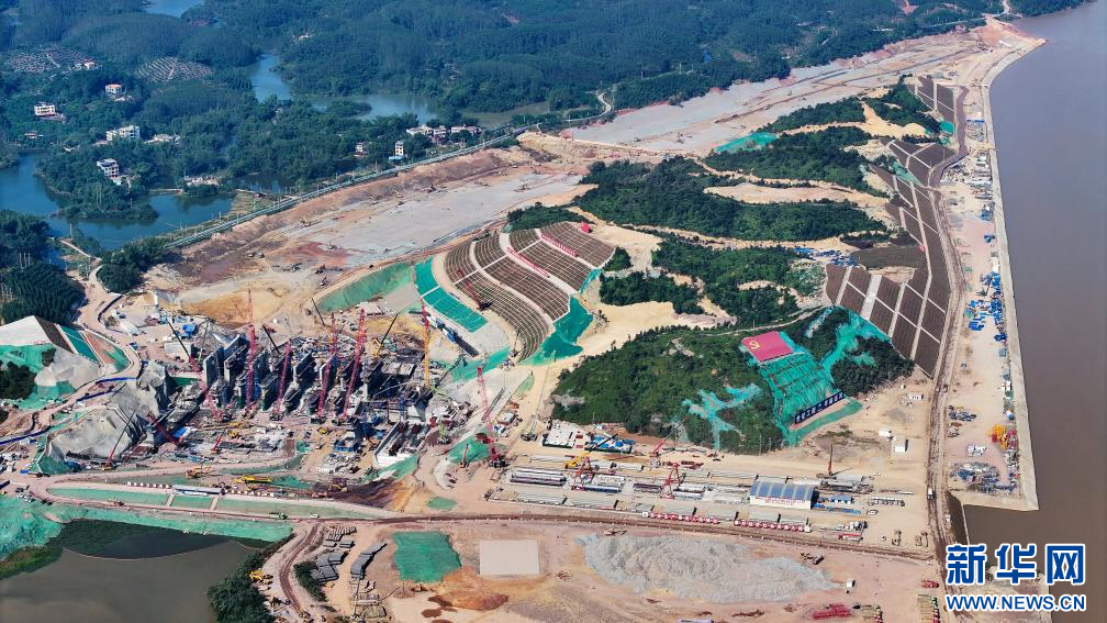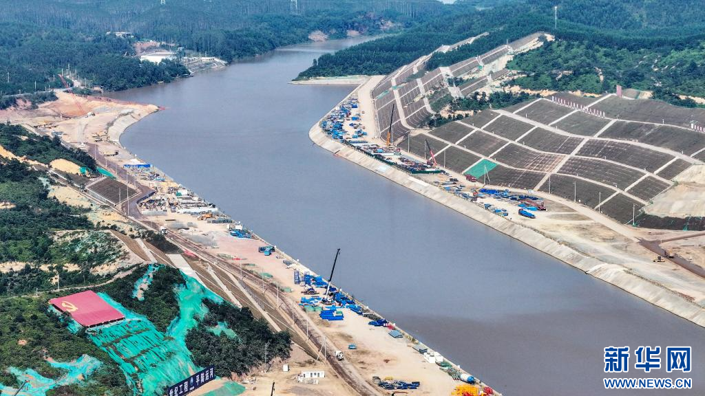 这是2022年8月28日在广西灵山县拍摄的平陆运河马道枢纽建设现场(无人机照片)。