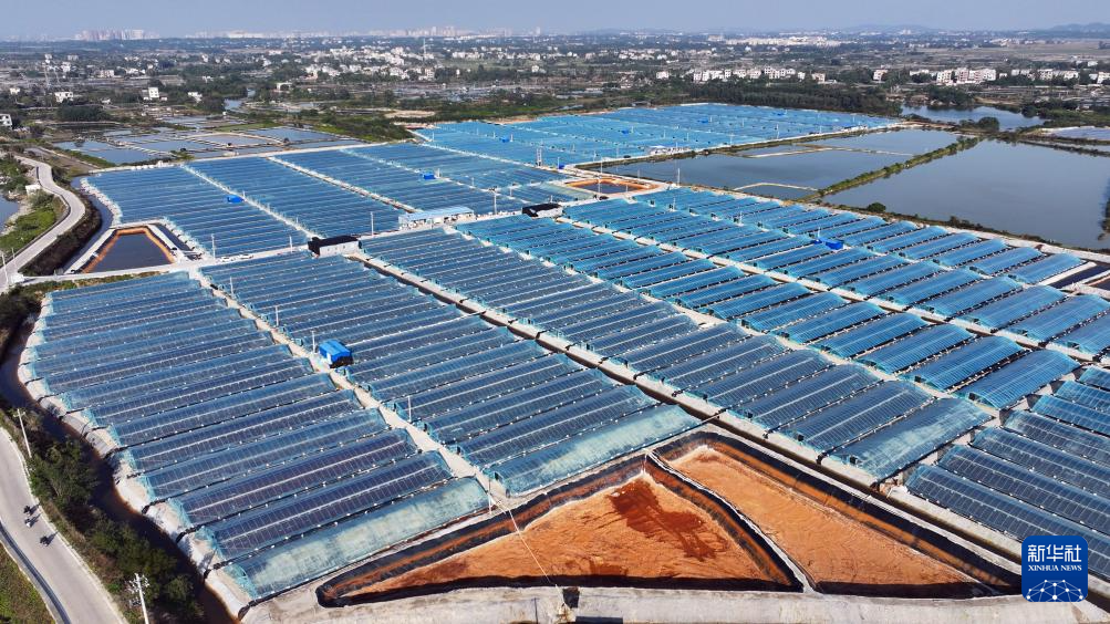 合浦县廉州镇的一处对虾养殖基地(12月27日摄,无人机照片)。
