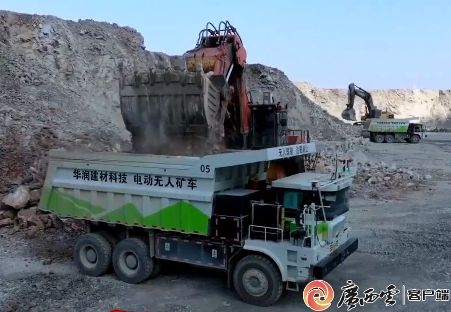 华润建材科技田阳工厂的电动无人矿车正在作业。曾俊 谢立 摄