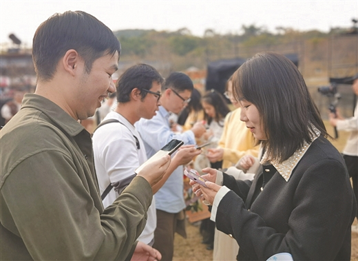 在青秀山参加交友活动的男女青年互加微信。 孟振兴/摄