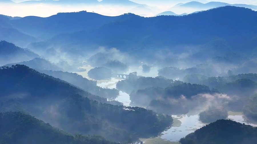 晨雾缭绕着东龙森林公园,群山秀水披上轻纱,犹如一幅婉约灵动的水墨画。梁辉 摄