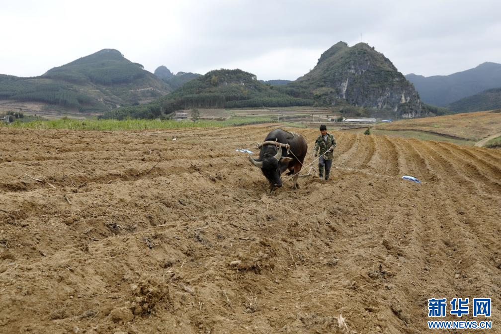 2月25日,广西来宾市忻城县城关镇村民在犁地,准备种植甘蔗。