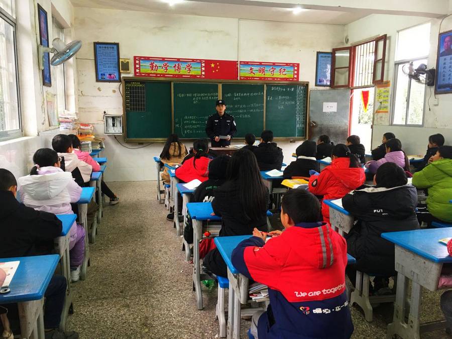 图为民警在山区小学开展普法宣传。吕佩霞 摄