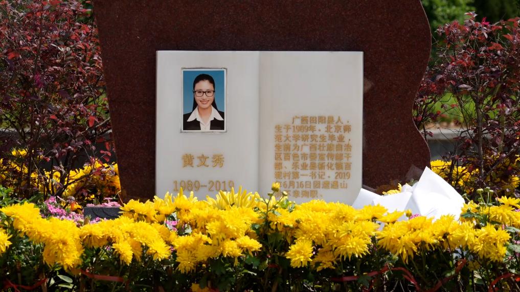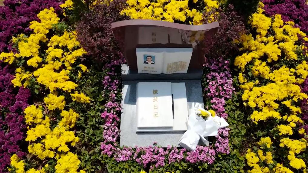 黄文秀墓前摆放着《扶贫日记》雕塑