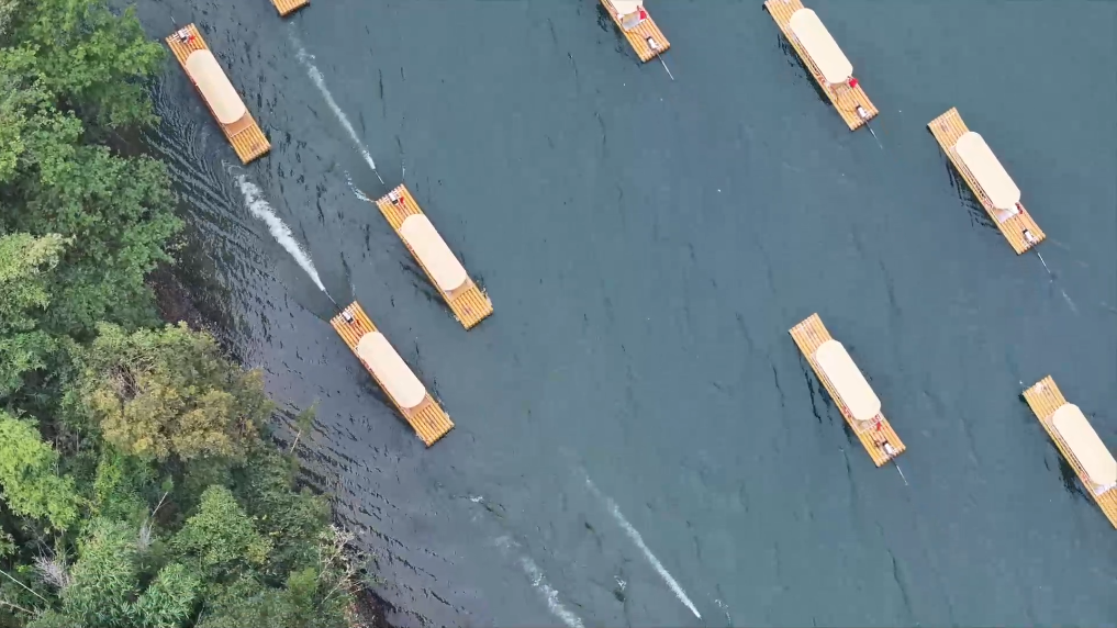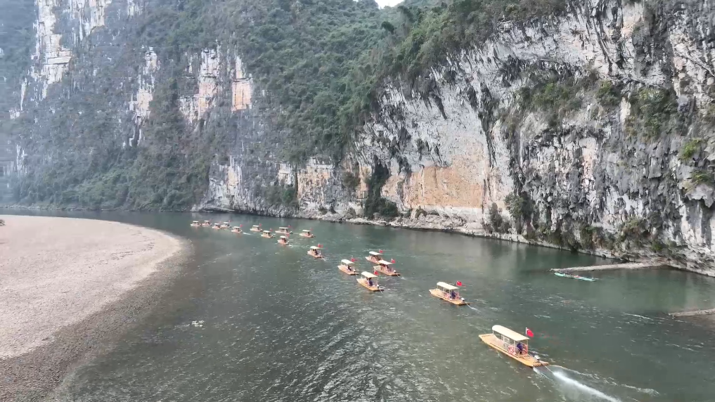 经过各方多年来的努力,漓江上原有的1210张传统汽油机为动力的游览排筏,已有1000张换成了电力驱动的新能源游览排筏。
