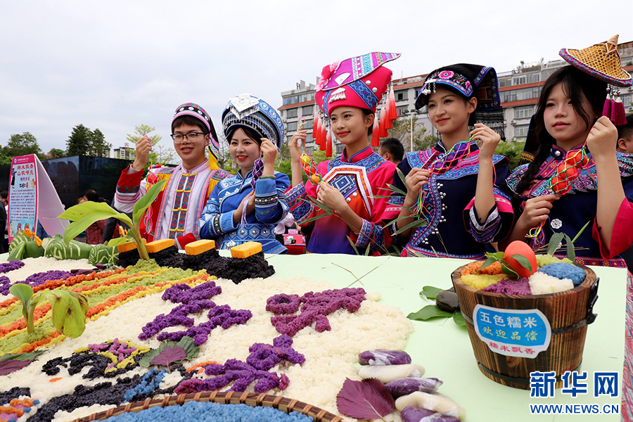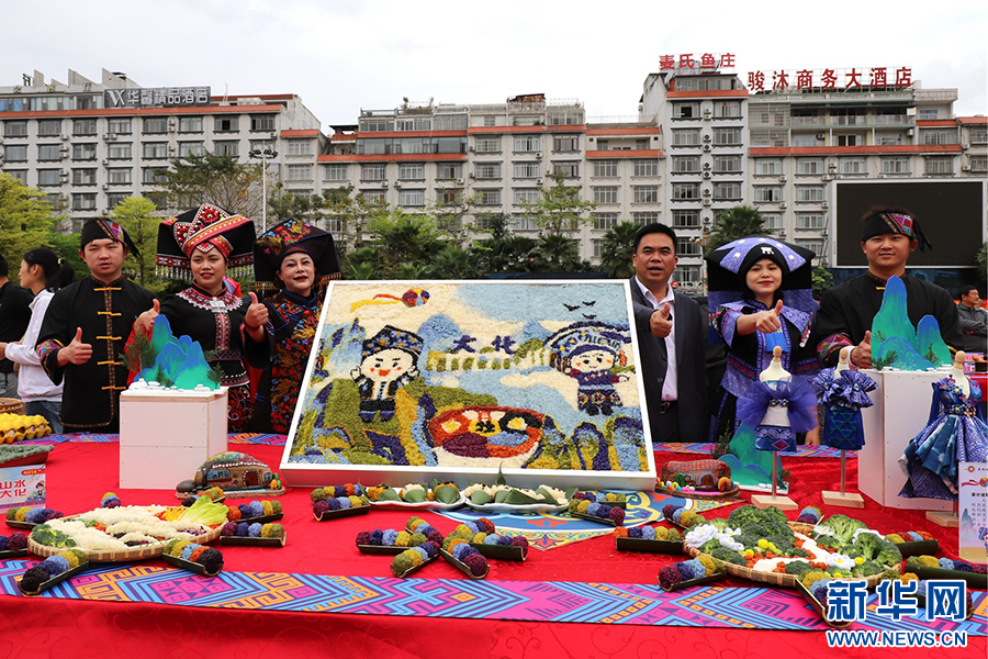 近日,广西大化瑶族自治县举行“糯文化 看大化”美食展示活动,心灵手巧的瑶乡群众发挥想象力、创造力,将“五色糯米饭”摆出各式各样的造型图案,一份份充满民族特色兼具创新时尚的五色“糯食”作品,吸引众多市民、游客驻足观赏、品尝。