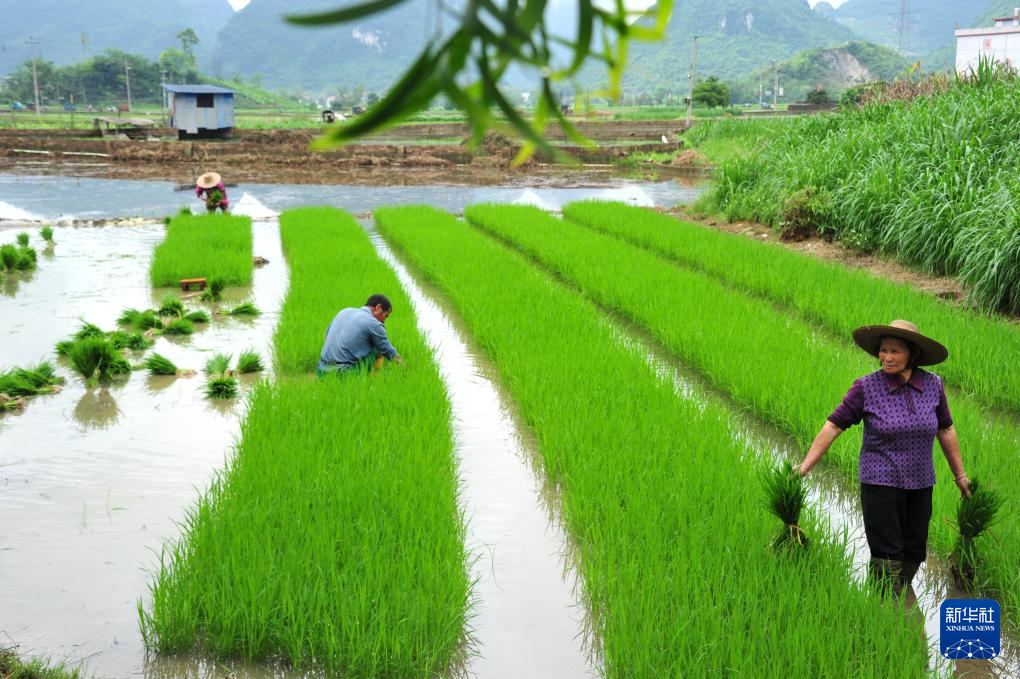 4月18日,在广西罗城仫佬族自治县四把镇石门村,农民在田间劳作。