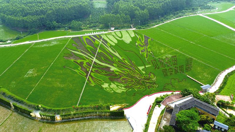 “见龙在田”出自《易经·乾卦》,原句是“见龙在田,利见大人”,寓意神龙出现在东方大地、田间地头,经过接续奋斗,实现国家人民富裕、社会和谐。“我们希望通过这幅稻田画,祝愿祖国繁荣富强,国泰民安。”宾阳京兆大陆旅游开发有限公司执行总经理何远峰表示,当前“见龙在田”已处于最佳观赏期,期待众多游客来打卡拍照。