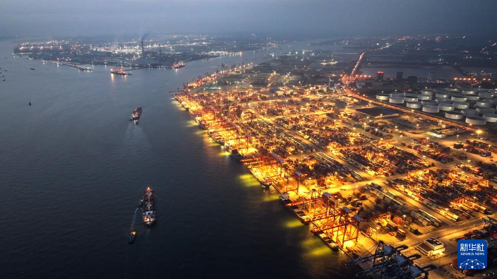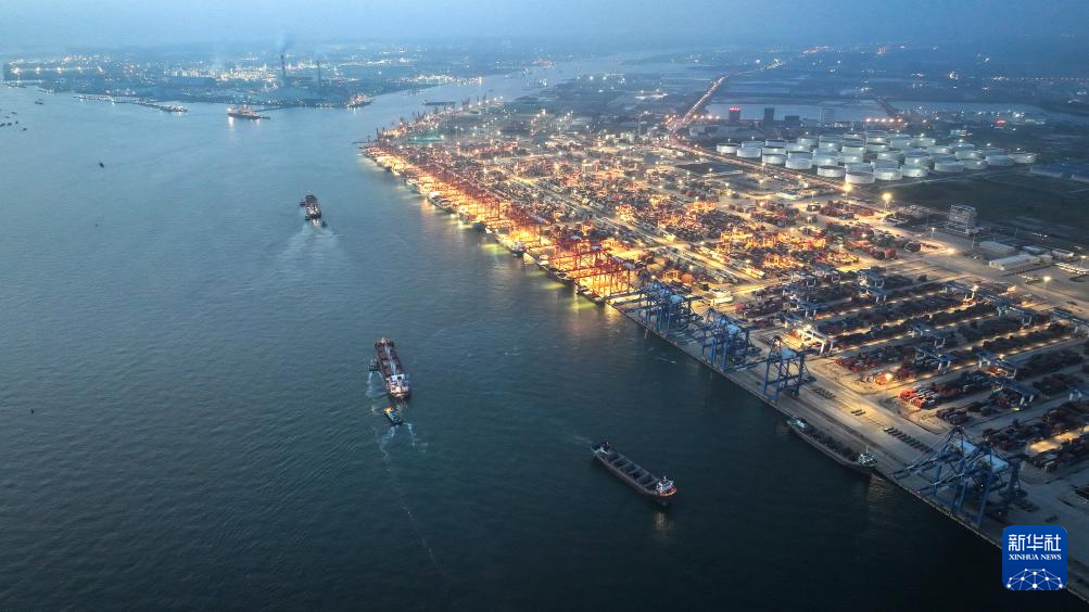 夜幕下的广西钦州港码头(5月9日摄,无人机照片)。