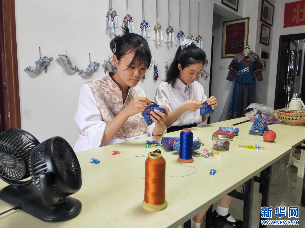“我们研究网络及社交平台上的流行趋势,分析时尚品牌的新款产品,融合最新时尚元素后推出我们的产品。”范丽华说,随着在校实习生等年轻人不断加入,工作室的设计团队已有6人,设计的壮锦生肖摆件、服饰配件等受到年轻人的欢迎,不少产品刚推出就销售一空。