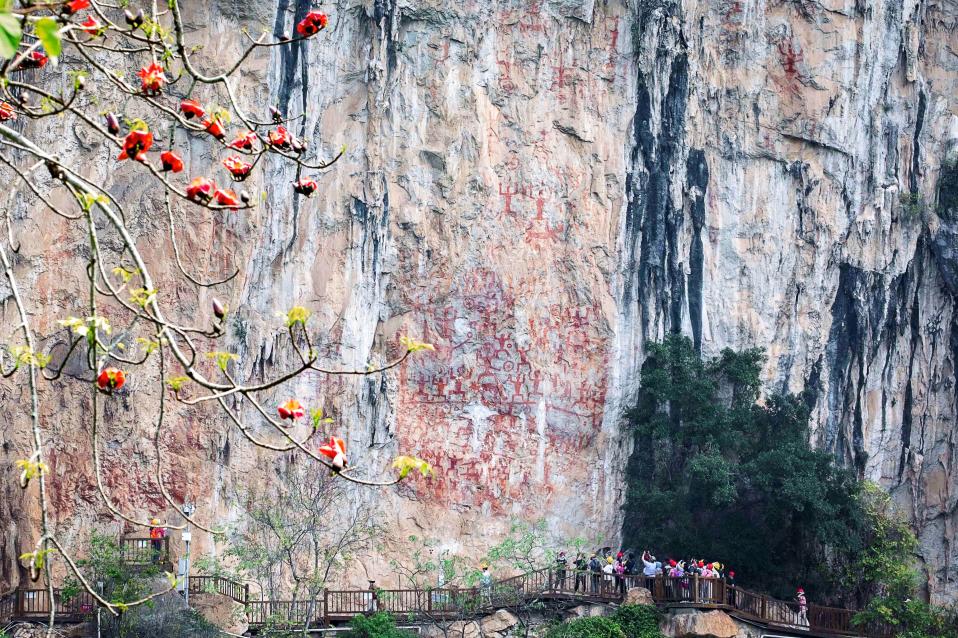2016年7月15日,在第40届世界遗产大会上,广西左江花山岩画文化景观成功列入世界文化遗产名录,填补了中国岩画类世遗项目的空白,实现了广西世界文化遗产零突破。近年来,宁明县打响花山岩画靓丽名片,使这一文化瑰宝在保护传承中焕活新生,为当地乡村振兴注入新动力。