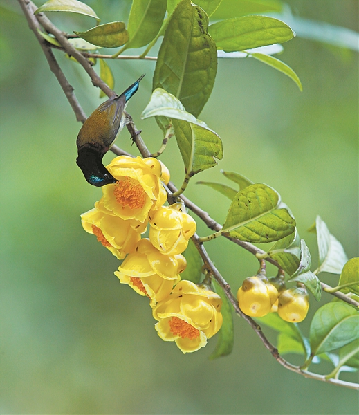 而今,“皇后”走出深山,成为防城港市市花。花开惠及万千人。这个滨海城市依托6.7万亩金花茶,形成了育苗、种植、科研、加工、观赏为一体,年产值超20亿元的新兴产业。