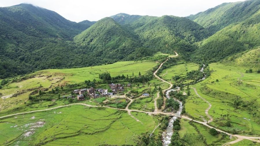 大田村四周青山环绕,一道绿水绕流,安详静谧,仿佛世外桃源。(廖祖平)