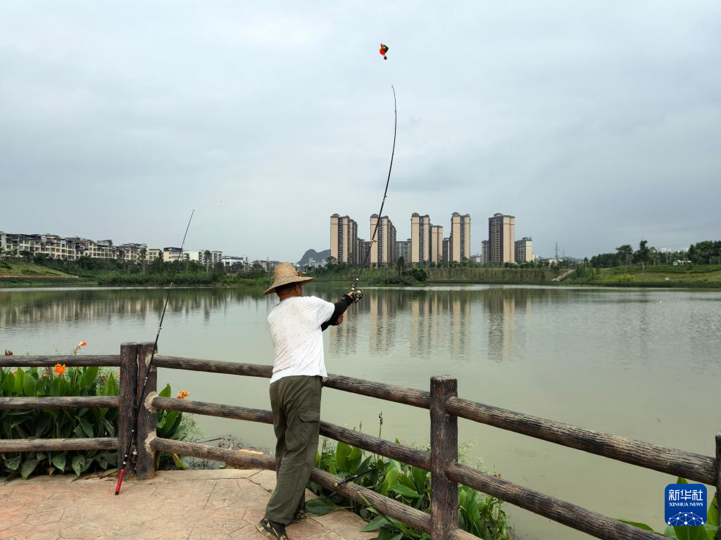 图为扶绥县居民黄光明在秀湖垂钓。新华社记者王楚然 摄