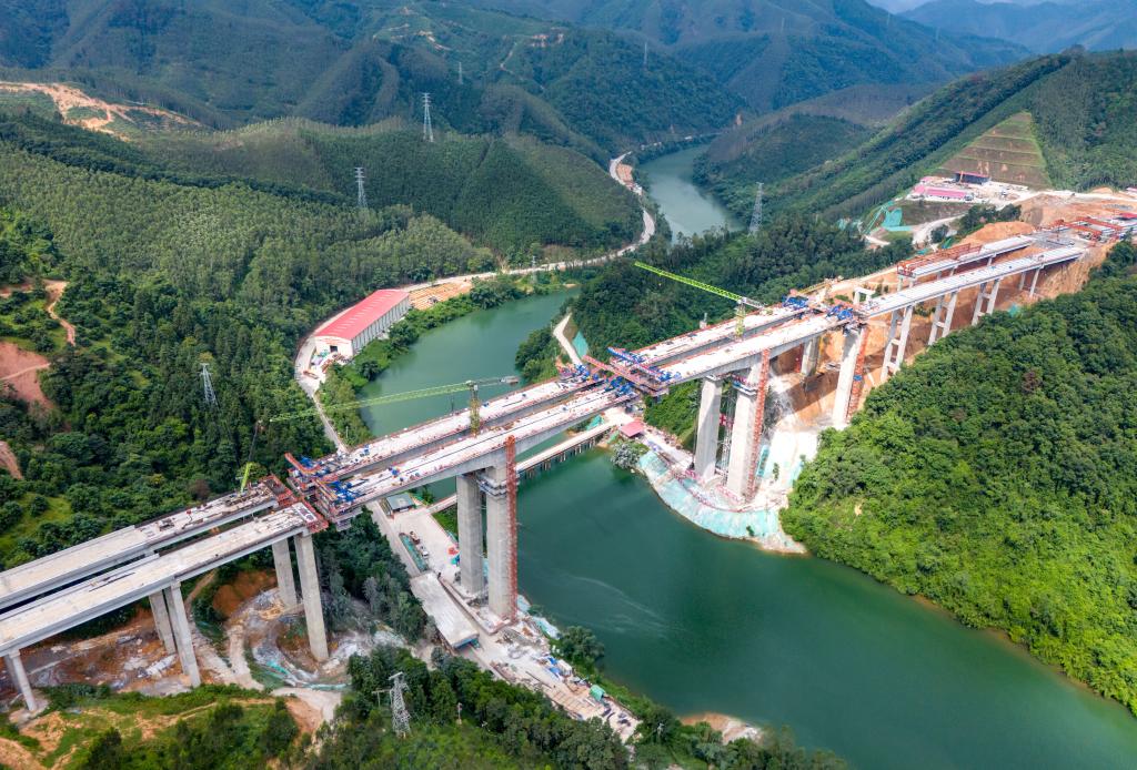 广西贺州:连贺高速黄洞大宁河大桥加紧建设