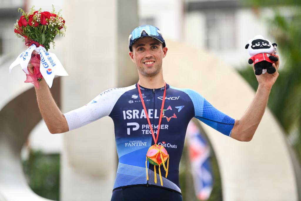 新华社南宁10月17日电(记者张卓文、曹祎铭)17日,2024环广西公路自行车世界巡回赛第三赛段(靖西-巴马)开赛,来自以色列博泰车队的伊森·维尔农夺得该赛段冠军,并穿上代表总成绩第一的红衫、代表“冲刺王”的蓝衫和代表最佳年轻车手的白衫。