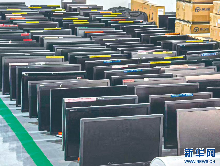 图为广西来宾市实体公物仓中的闲置电脑。本组图片均为受访者供图