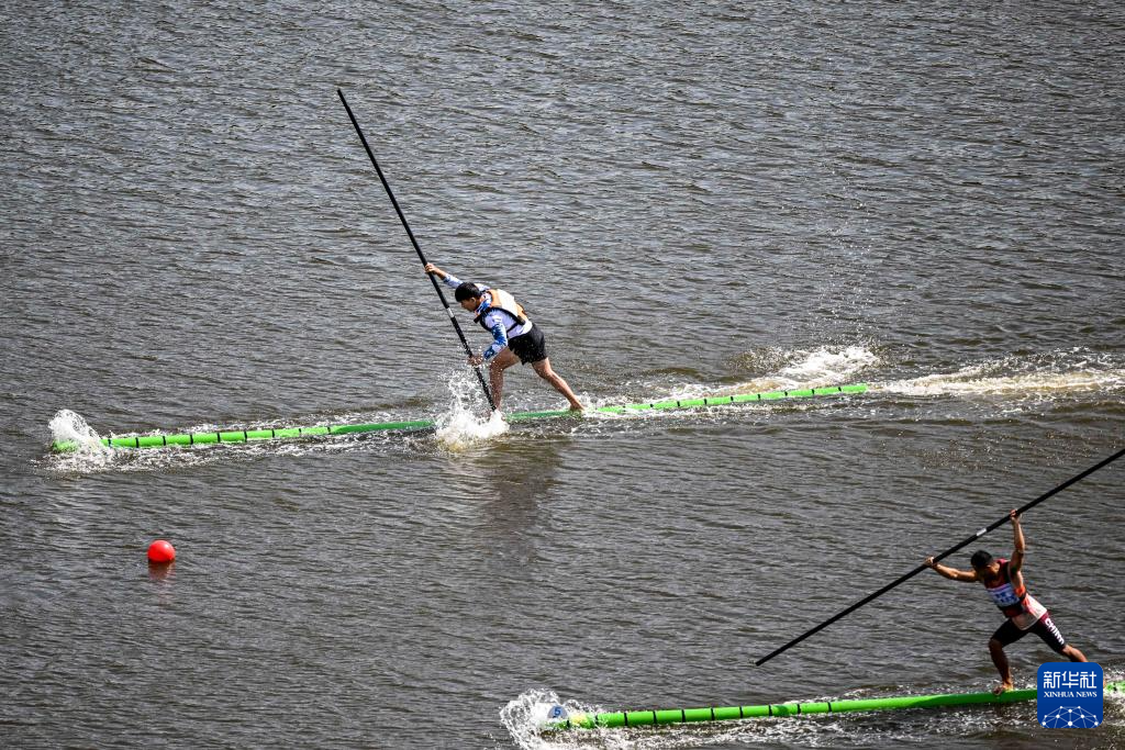 当日,第十二届全国少数民族传统体育运动会独竹漂男子组60米直道赛在海南省三亚市举行。