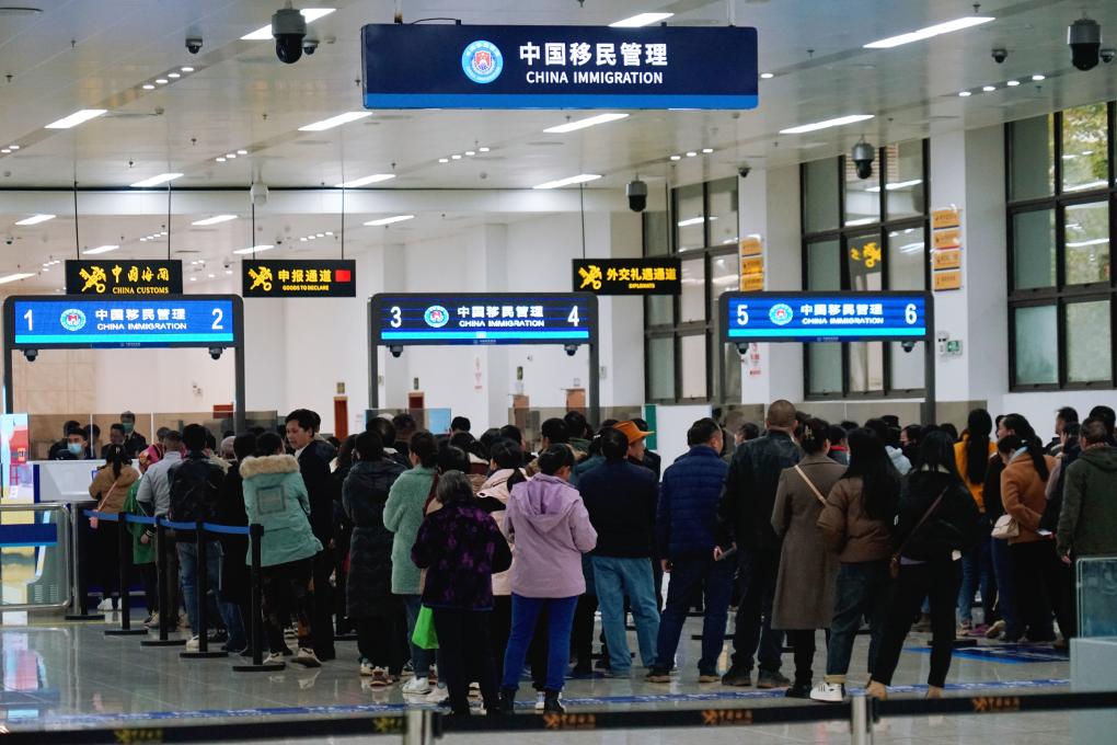 图为旅客有序接受出入境边防检查。谢志帅摄