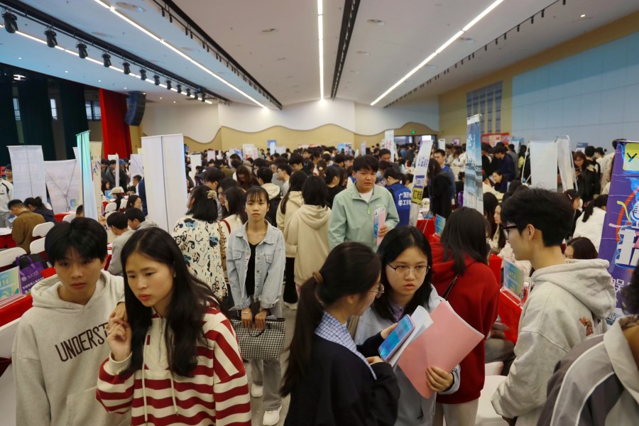 双选会当天,现场人头攒动,气氛热烈。“双选会上提供的岗位挺好的,招聘岗位与专业匹配度较高。”贺州学院旅体学院2025届毕业生蒋文琳说,她已经投递了五份简历,期待能收获一份满意的工作。