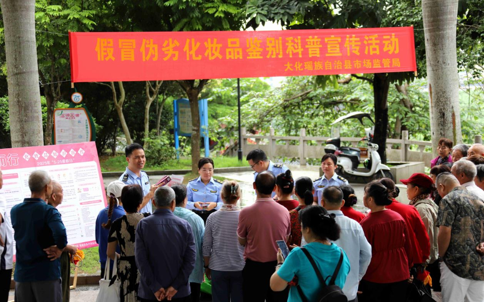 为进一步强化公众护肤安全意识,近日,广西河池市大化瑶族自治县市场监督管理局以“安全用妆 量肤而行”为主题,开展化妆品宣传周活动。活动通过多种宣传举措,聚焦化妆品监管法规普及,推动法规贯彻执行,同时加强不良反应监测,全方位筑牢公众用妆安全防线。