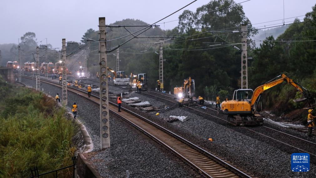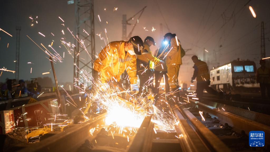 这是铁路工人在给西部陆海新通道更换轨道(2021年9月2日摄)。
