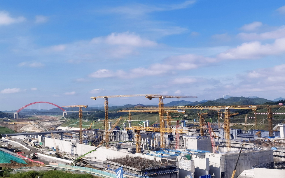 当天,记者走进平陆运河马道枢纽建设现场,只见多台塔吊宛如钢铁巨人般矗立,持续将钢筋、混凝土构件精准输送至各个施工节点,工人们有序作业,一派热火朝天的施工景象。据了解,马道枢纽是平陆运河规划的三座梯级枢纽中的第一座,其通航建筑物为双线5000吨级省水船闸,并布置了三级省水池。截至9月18日,马道枢纽已累计浇筑船闸主体混凝土244.7万立方米,占混凝土浇筑总量的94.3%。