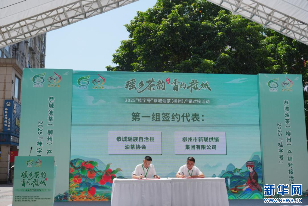 新华网南宁9月28日电(蔡思彦)27日,2025年“桂字号”恭城油茶(柳州)产销对接活动在广西柳州市举办。本次活动以“瑶乡茶韵 香约龙城”为主题,旨在聚焦柳州及周边市场,深入推广恭城油茶这一非物质文化遗产,促进两地饮食文化交流,拓展油茶市场渠道,整合产业链资源,助力地方特色产业发展与乡村振兴。