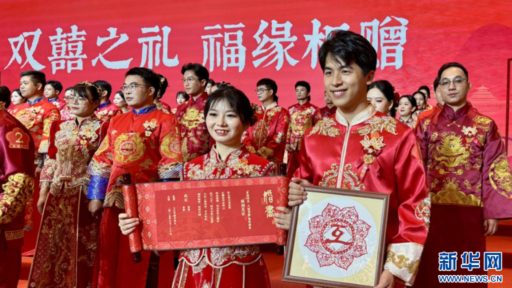 仪式上,新人们共同许下爱的宣言、发出婚事新办简办、反对高价彩礼,争做中华家庭美德的传承者、新型婚育文化的引领者、社会主义家庭文明新风尚的践行者倡议。与会嘉宾为新人们颁发中式婚书与“八互”剪纸作品,传递“八互”传统美德。