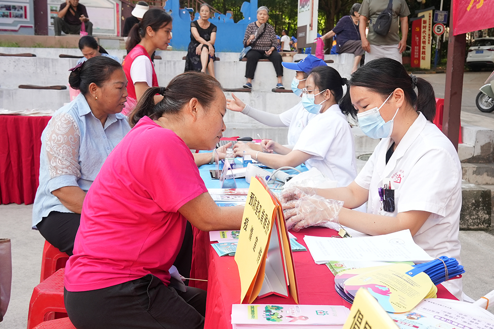 义诊服务区内,江南街道卫生服务中心及周边医院的医护人员早早到位,为居民提供血压血糖测量、心肺听诊、常见病预防指导等免费服务。医护人员耐心记录健康数据,针对不同年龄段居民给出个性化建议,还普及秋季养生、慢性病管理等知识,用专业服务为社区居民的健康保驾护航。