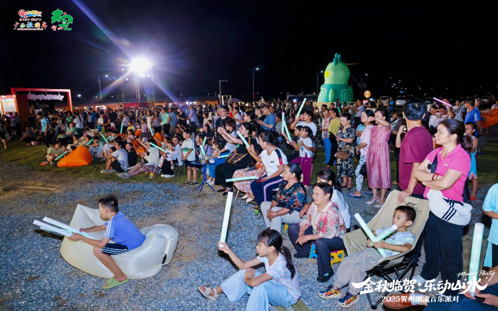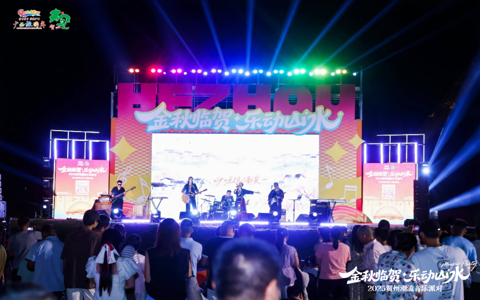 本次派对精心设置了“金曲粤浪之夜”与“青春潮音之夜”两大主题演出,特邀阿童木乐队、永夜极光乐队、谭斯译、莫也组合&北卡布洛乐队等区内外知名音乐人及乐队轮番登台,为现场游客呈上沉浸式的视听盛宴。演出融汇经典粤语金曲、民族潮流音乐与现代摇滚等多种风格,在贺州山水自然之间搭建起音乐与地域文化对话的舞台,有效聚集了现场人气,激发了夜间消费潜力,助力金秋时节“引客入贺”。