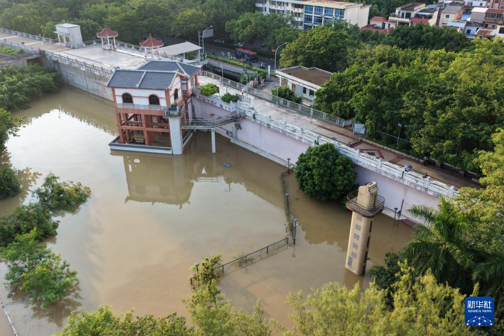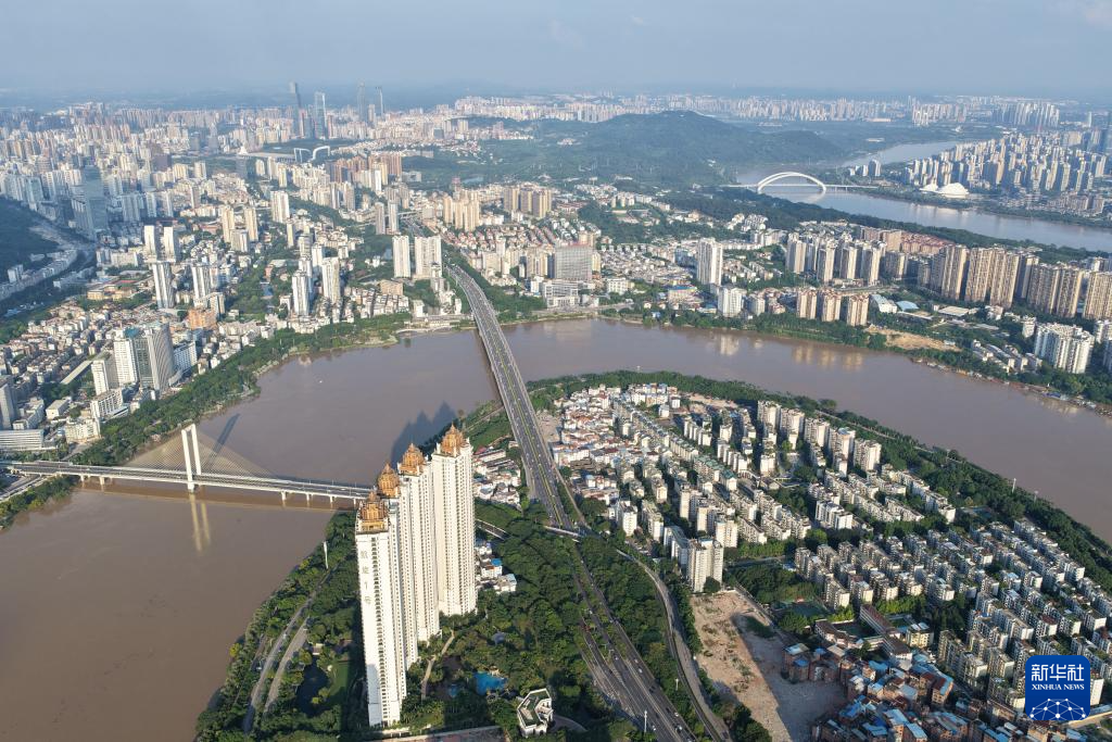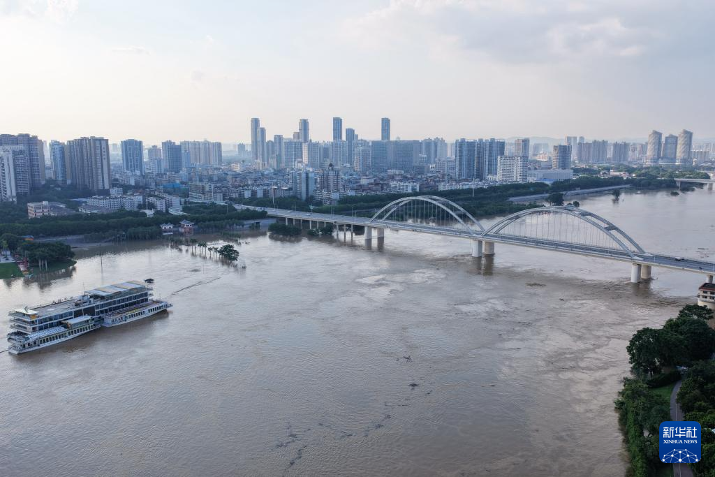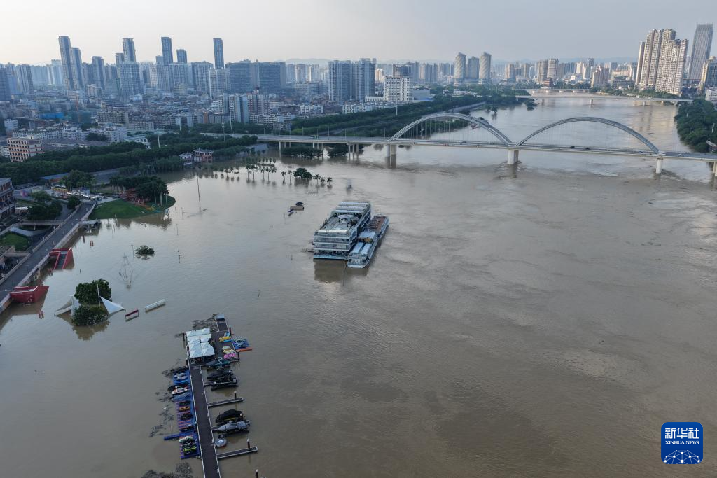 10月8日,邕江南宁市区河段水位不断上涨(无人机照片)。