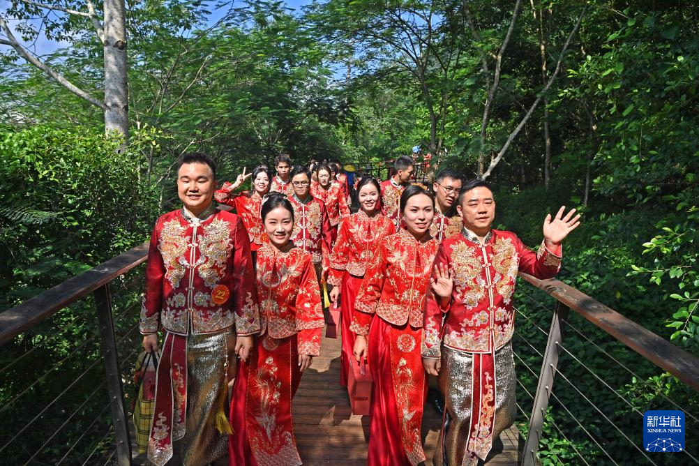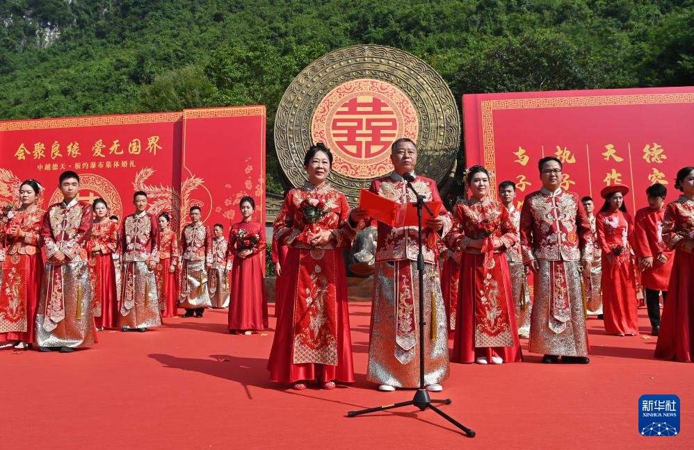 10月18日,“会聚良缘 爱无国界”中越德天(板约)瀑布集体婚礼在广西大新县中越德天(板约)瀑布跨境旅游合作区举行,中越两国39对夫妻参与,除新婚夫妻外,还有金婚、银婚夫妻参与活动。