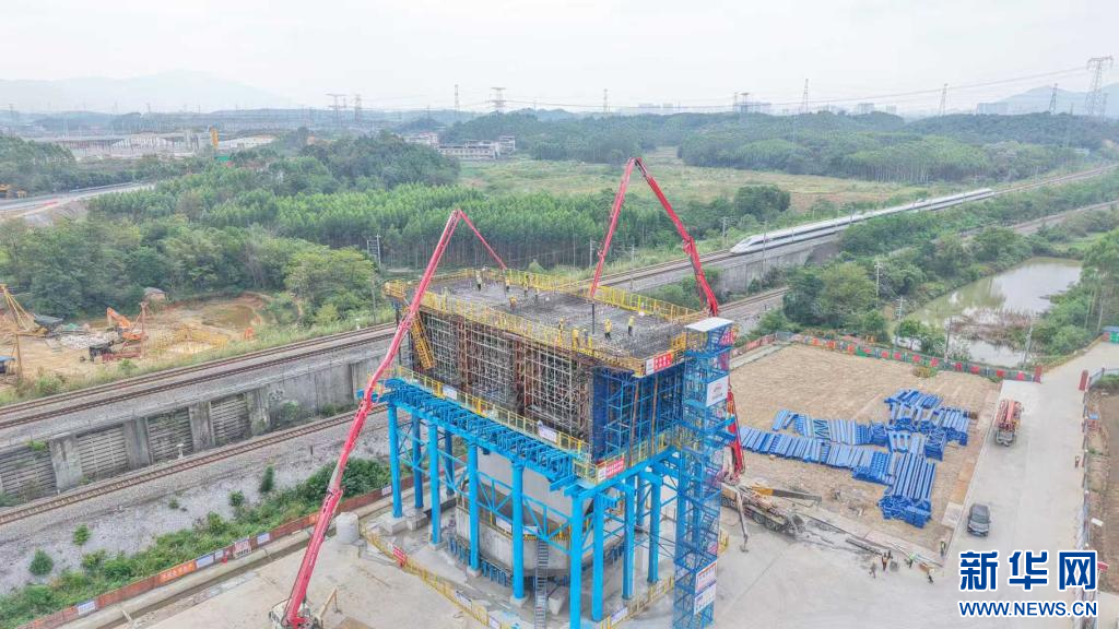 作为全线重难点工程,五福特大桥2号桥集“高、难、新”于一身。据现场技术负责人介绍,该桥堪称全线施工的“硬骨头”,32.2米超宽桥面刷新广西同类型转体桥梁宽度纪录,2×80米预应力混凝土连续T构设计、总重达2.5万吨的转体重量均属桂林首例。更复杂的是,大桥需上跨湘桂、衡柳两条运营铁路。