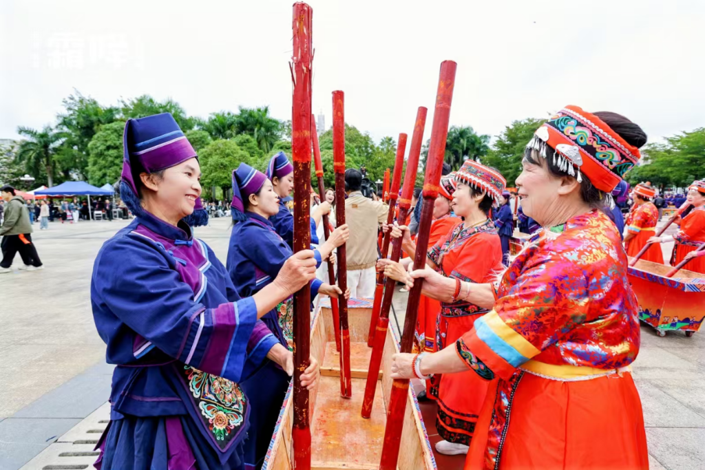 开幕式当天,一系列丰富多彩的特色活动轮番登场。千人打榔舞表演环节,数百名身着壮族传统服饰的表演者整齐列队,手持木榔有节奏地敲击石槽,清脆的声响与嘹亮的壮歌交织回荡;文艺展演舞台上,歌舞节目接连上演,现场掌声阵阵;特色产品展销区里,天等指天椒、八角、腊肉等地方特产琳琅满目,吸引众多嘉宾与市民驻足选购。