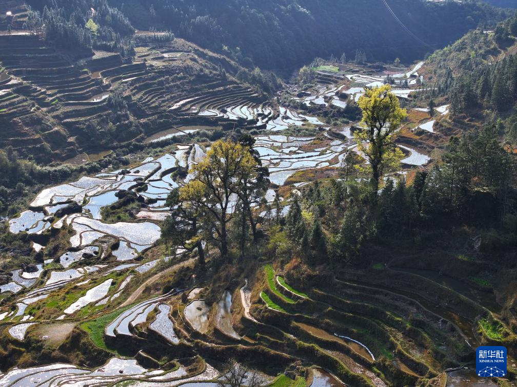 这是在广西柳州市融水苗族自治县安太乡小桑村拍摄的树木(2025年3月21日摄,无人机照片)。
