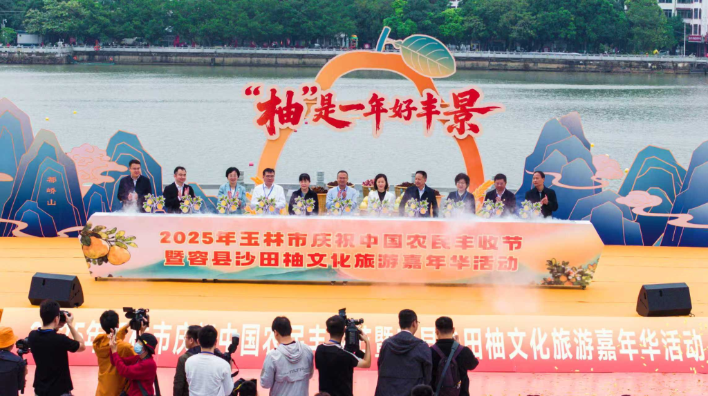 2025年玉林市庆祝中国农民丰收节暨容县沙田柚文化旅游嘉年华活动启动仪式现场。